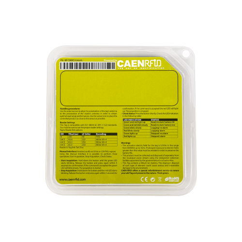 CAEN RFID (RT0005) is a low cost, semi-passive UHF tag that allows to monitor temperature sensitive products like perishable foods and pharmaceuticals, during transportation and storage.